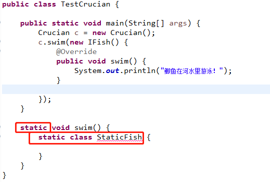 在静态方法中定义的内部类也是静态嵌套类,这时候不能在类前面加 static 关键字